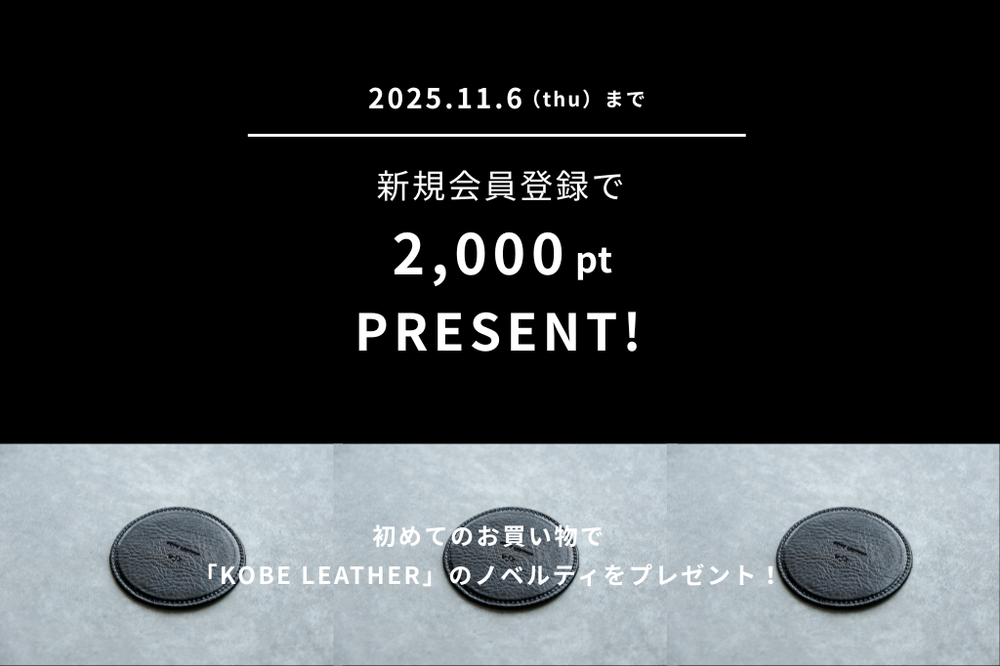 ■キャンペーン詳細 初めてのご注文で上質レザーブランド「KOBE LEATHER」のレザーコースターをノベルティとしてプレゼントいたします。