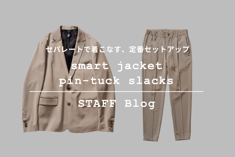 シンプルでありながら、着るだけでスタイルを引き締めてくれるwjkの定番シリーズ。テーラードジャケットとピンタックスラックスは、セットアップとしてはもちろん、単品使いでも活躍するアイテムです。特殊合繊素材による上品な光沢と快適な着心地に加え、細部までこだわり抜かれたディテールが、カジュアルからライトビジネスまで幅広く対応。今回はこのジャケット、そしてスラックスをそれぞれ取り入れた単品コーディネートをご紹介します。是非参考にしてみてください。