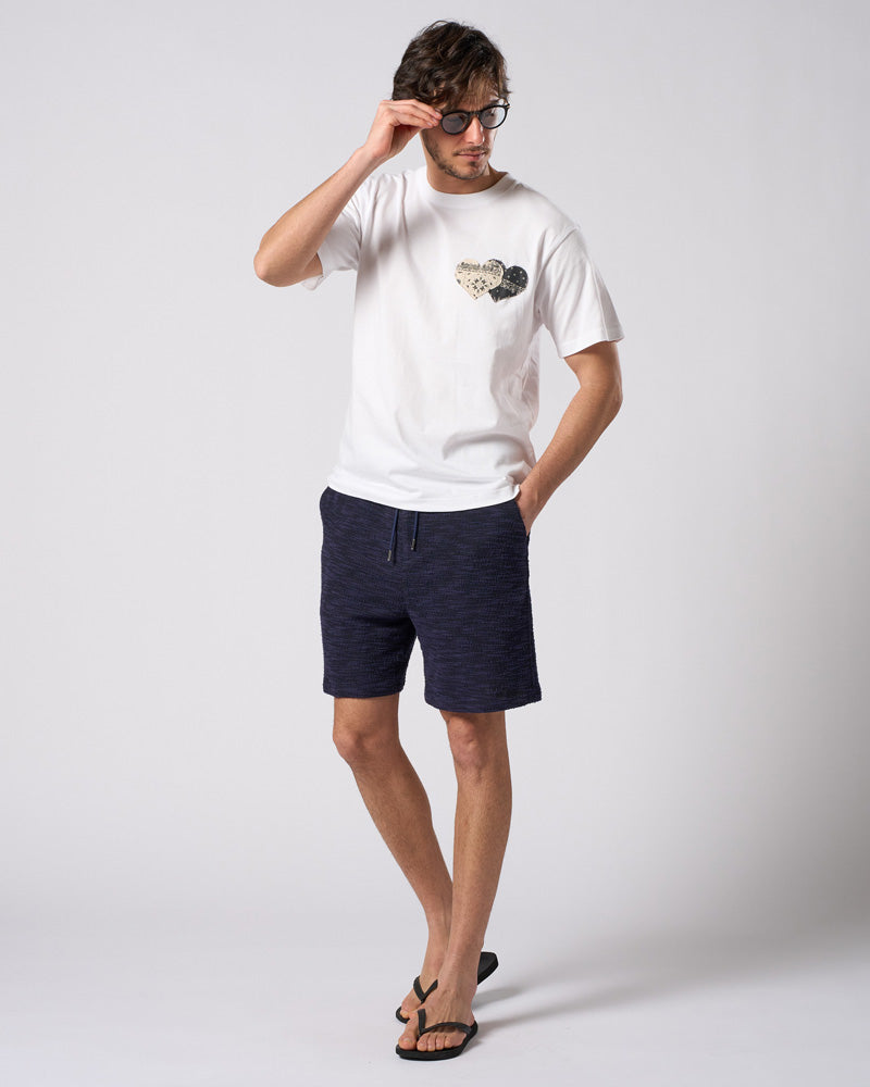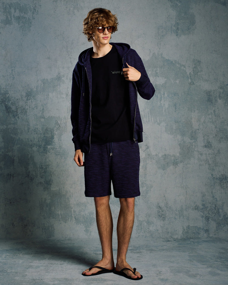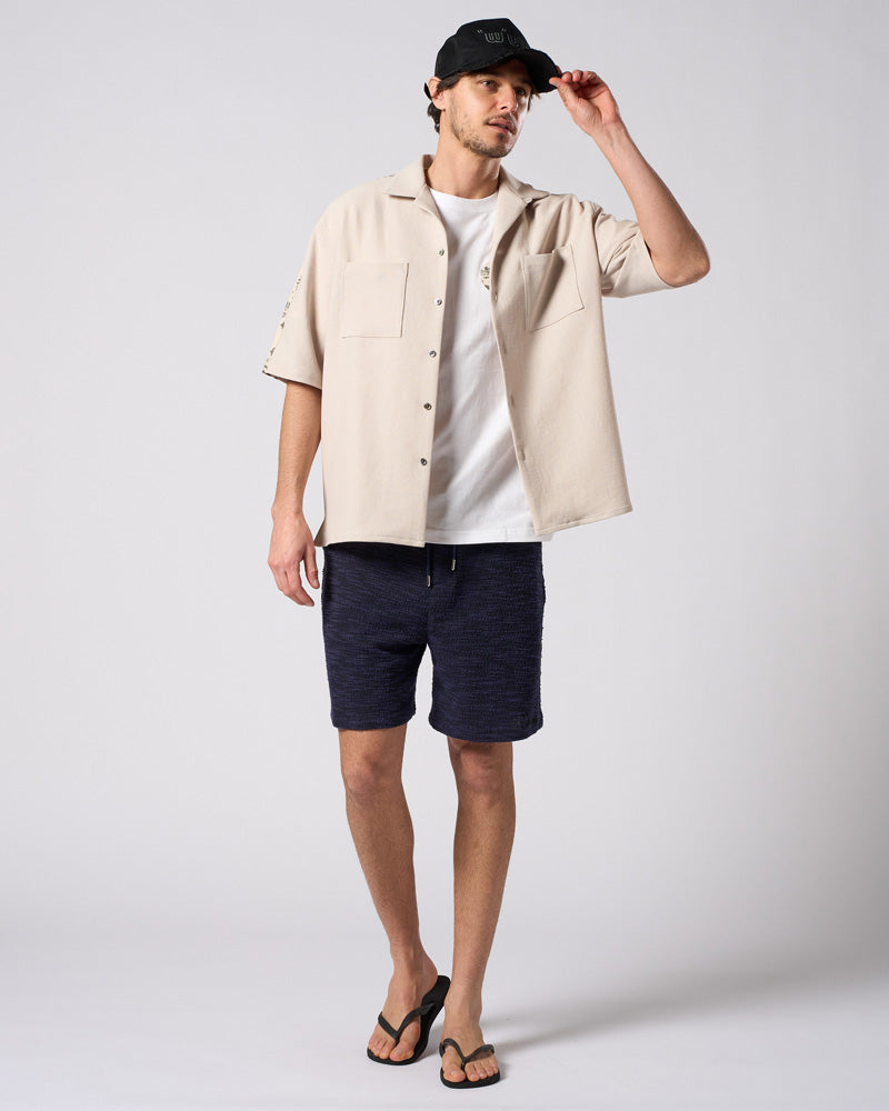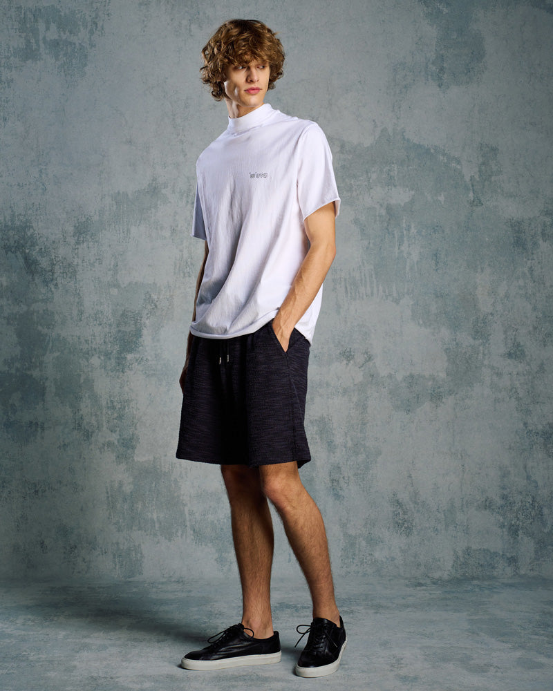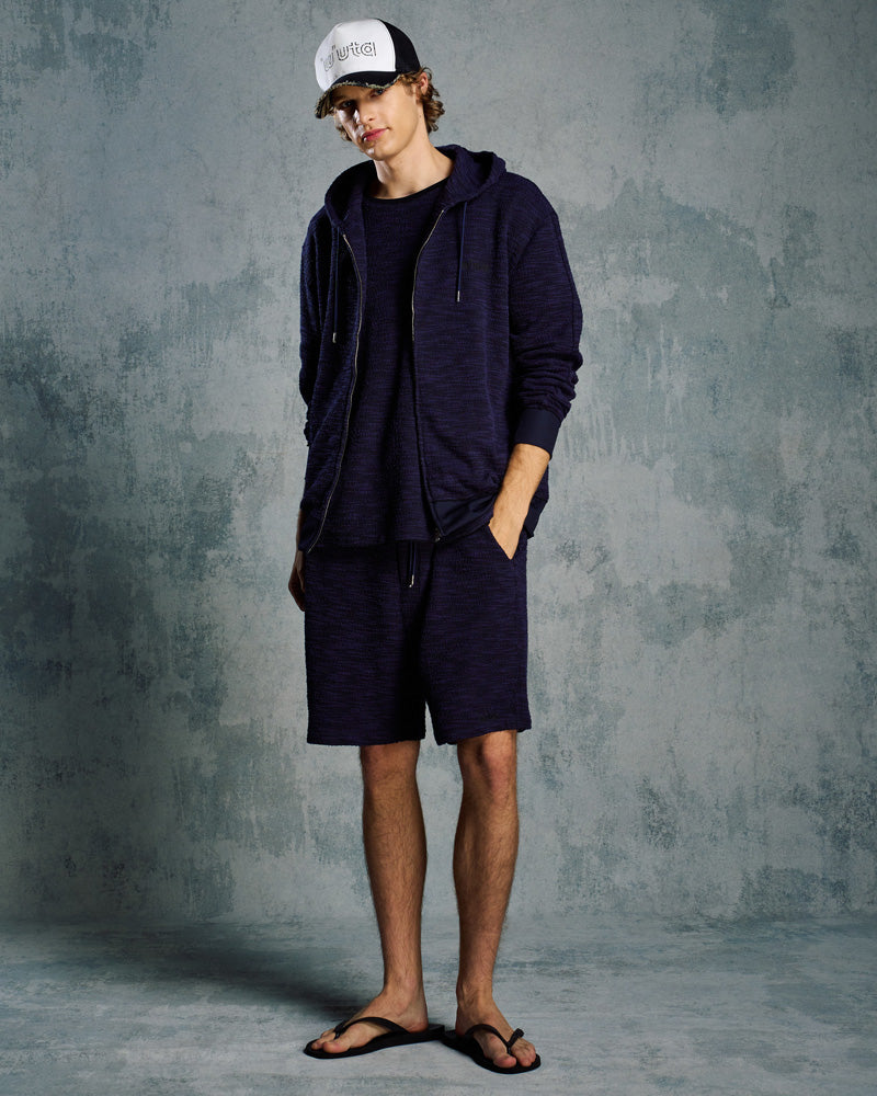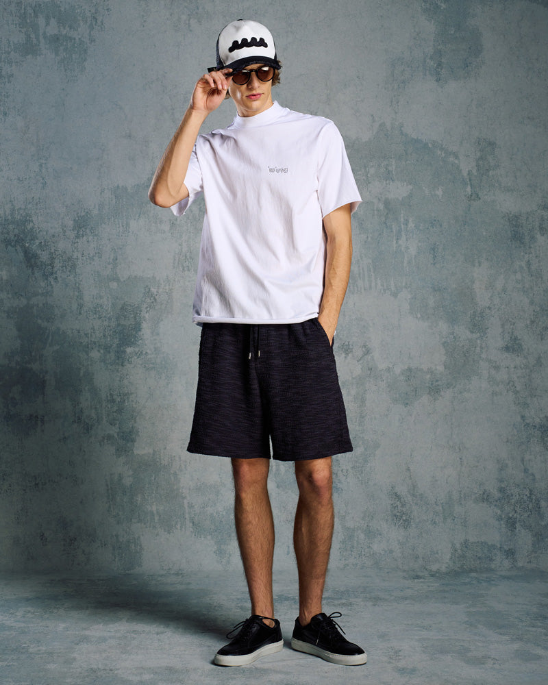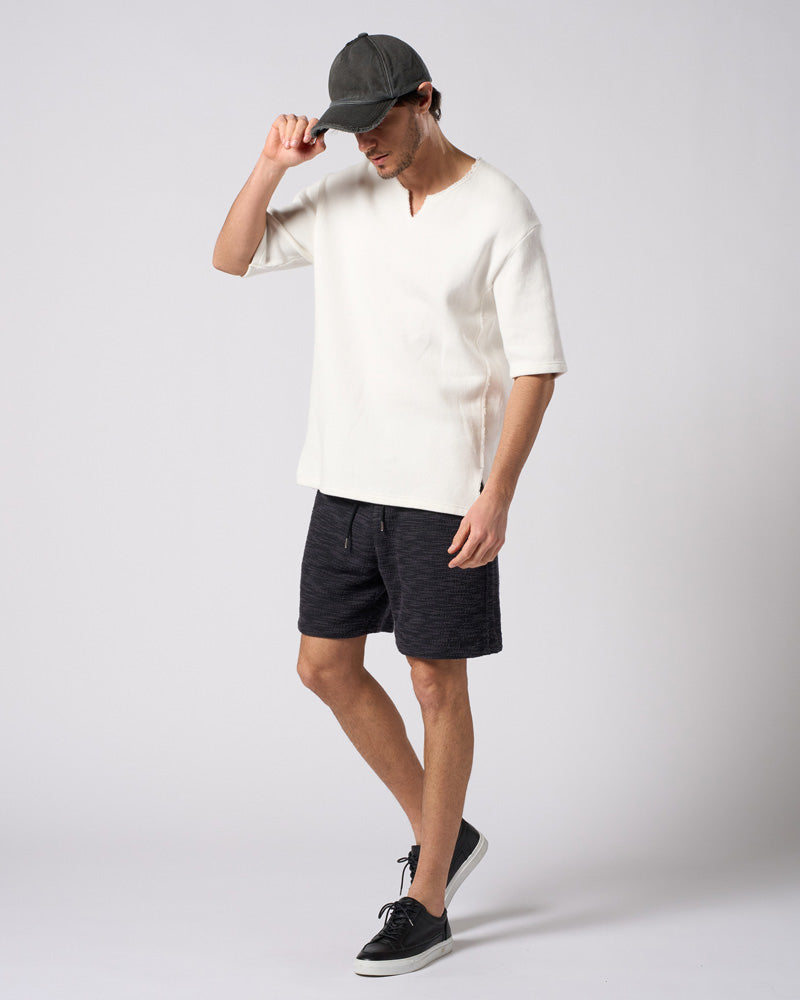 スラブ特有の凹凸感のある表情が目を惹くニットジャカードショーツ。