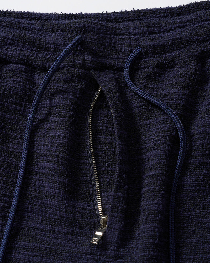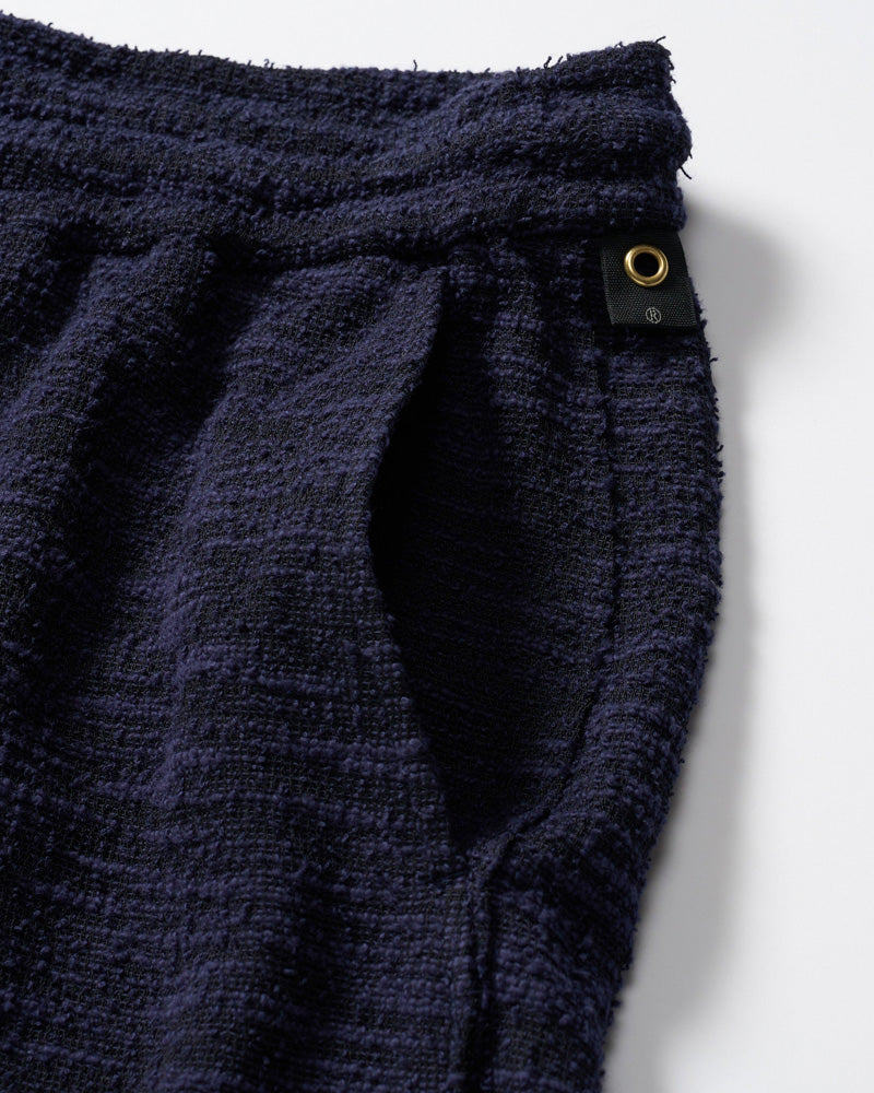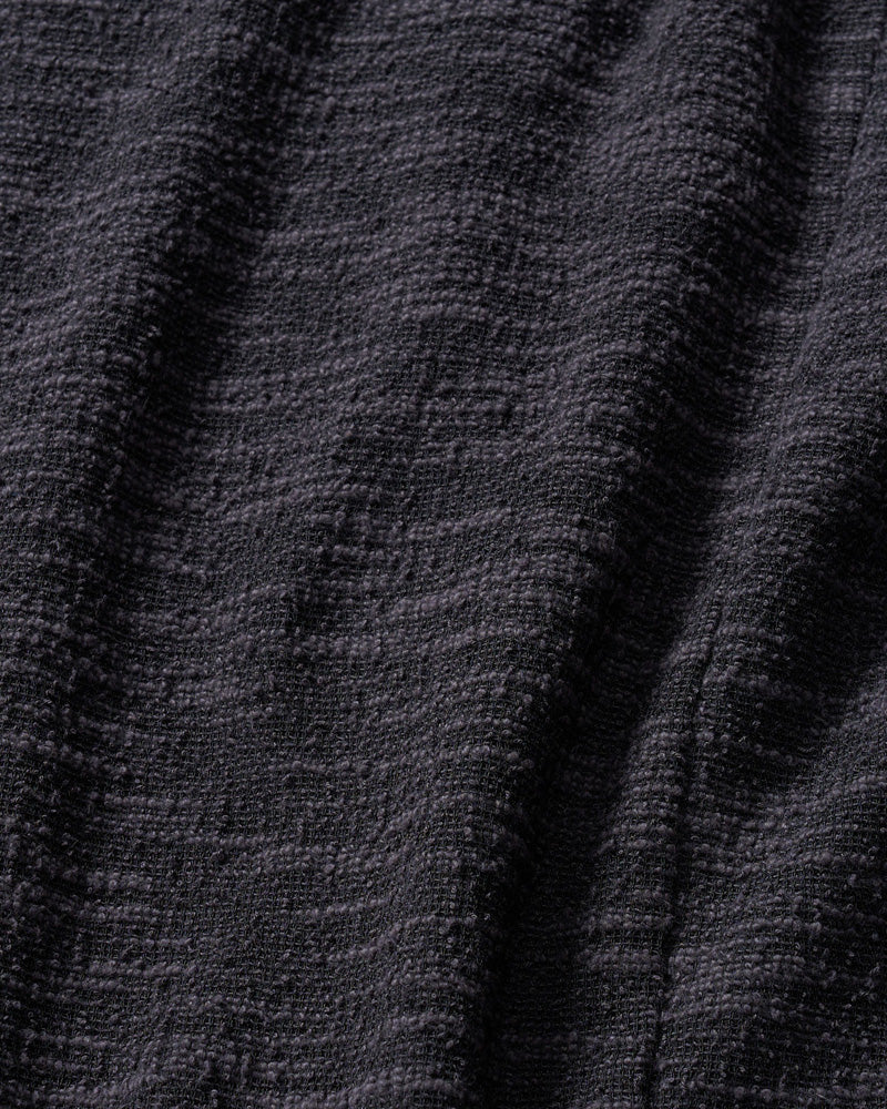 ポリエステルと綿のリング糸を使用することで独特なツイード柄を表現したニットジャガードを採用。