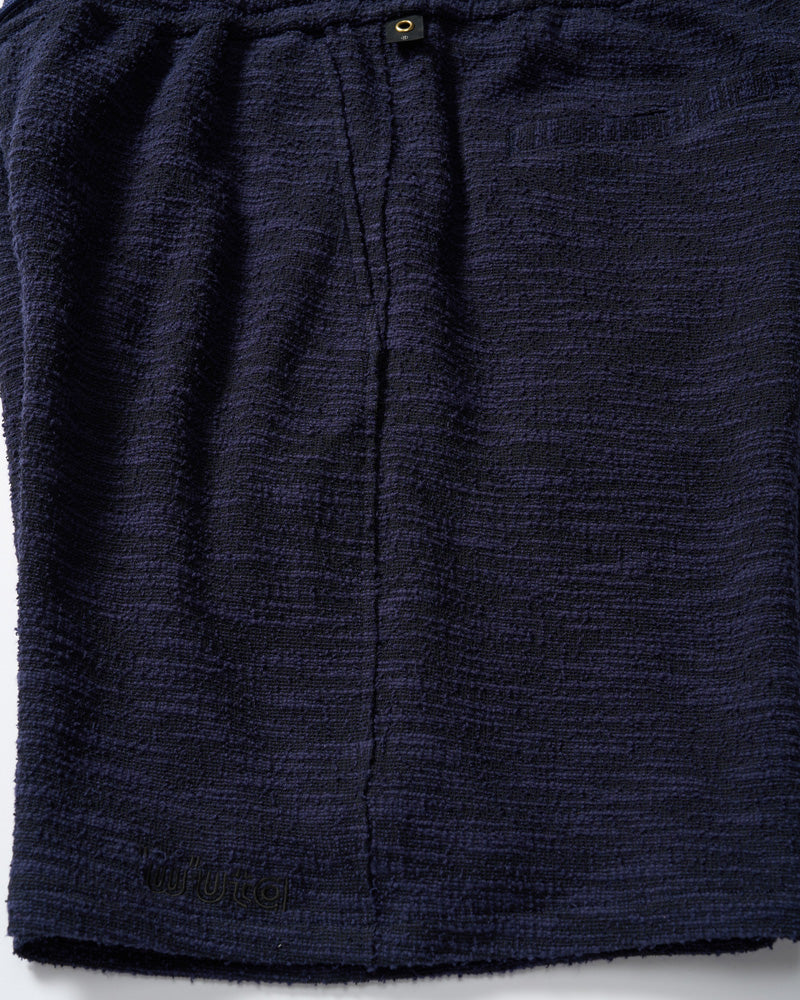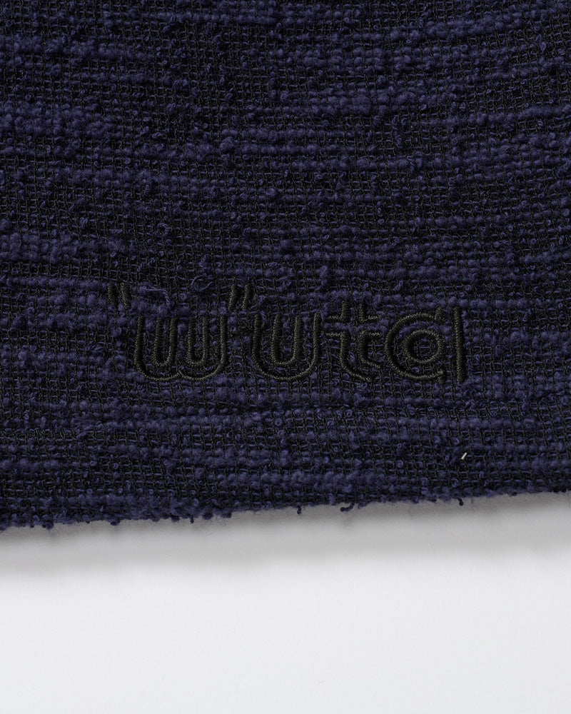 左裾の刺繍は、mutaの「m」を反転させ、wjkの頭文字である「w」とし、遊びを効かせたデザイン。