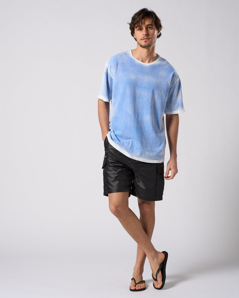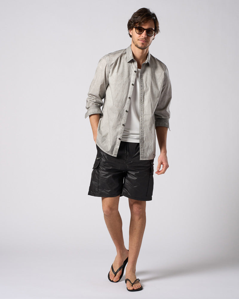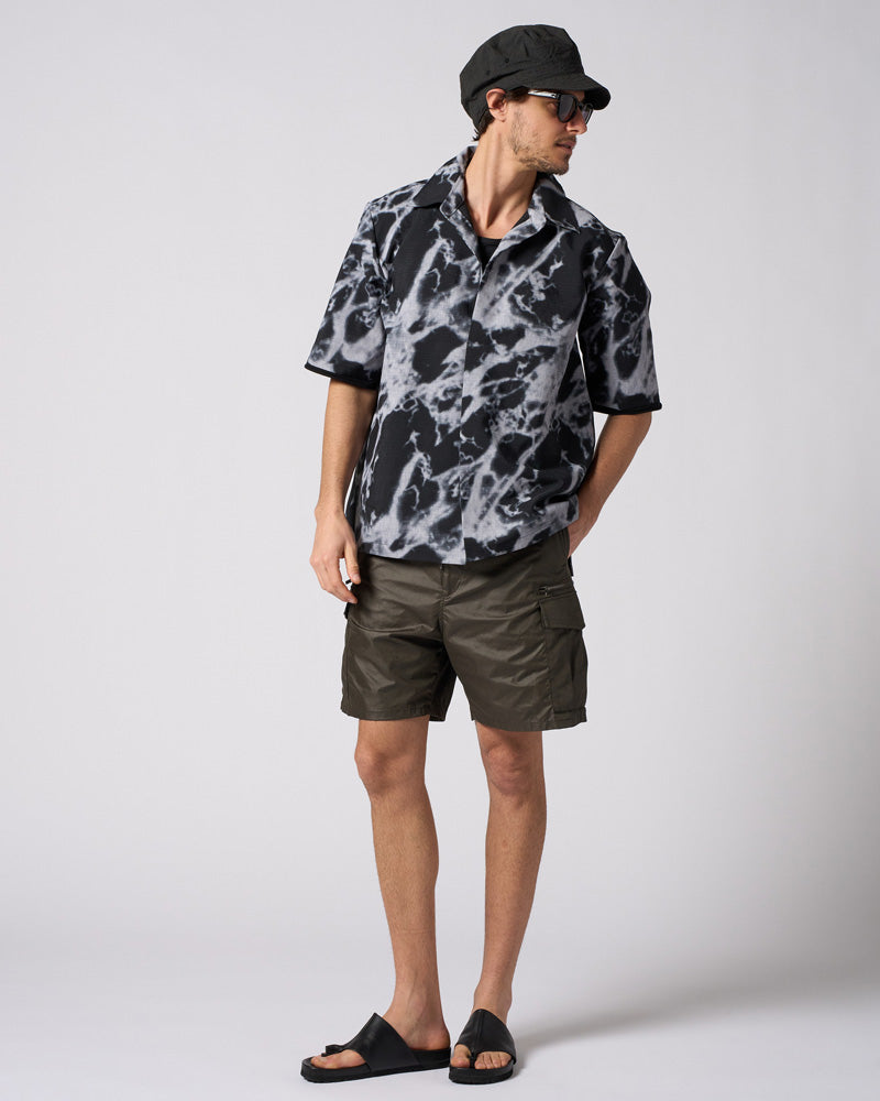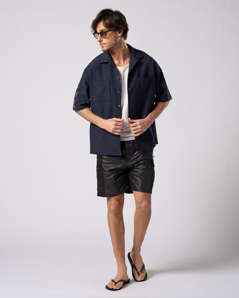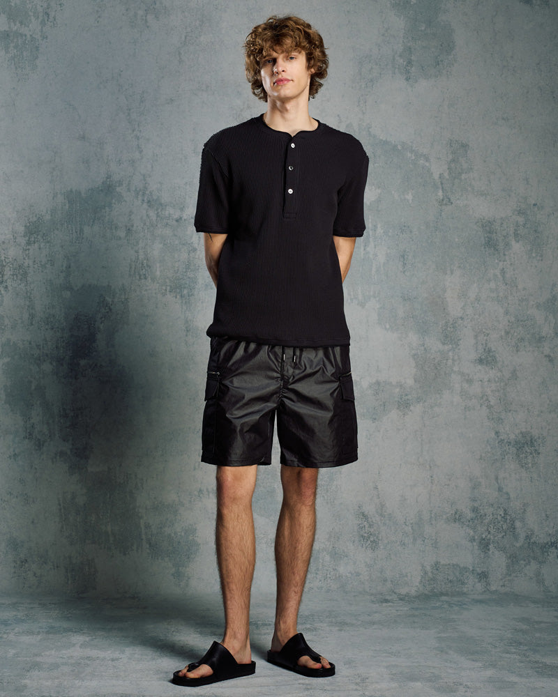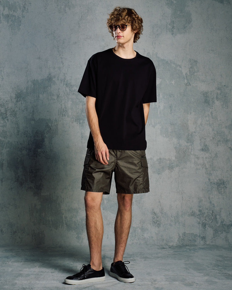 レザー調の重厚感のある佇まいながら、機能素材による軽やかな着用感により、軽装になりがちな夏の装いに程よいアクセントを加えてくれる。