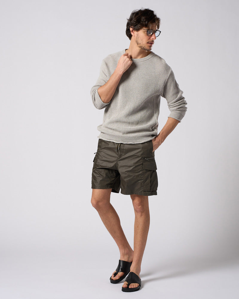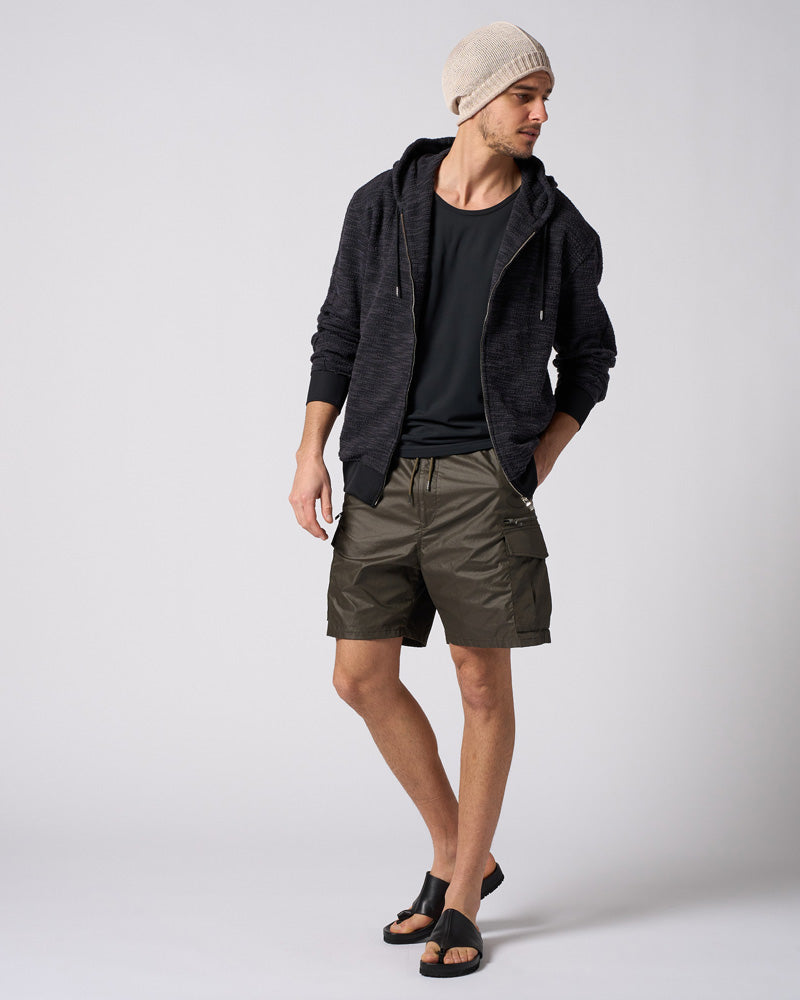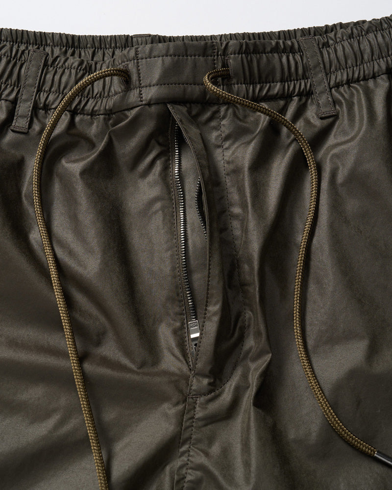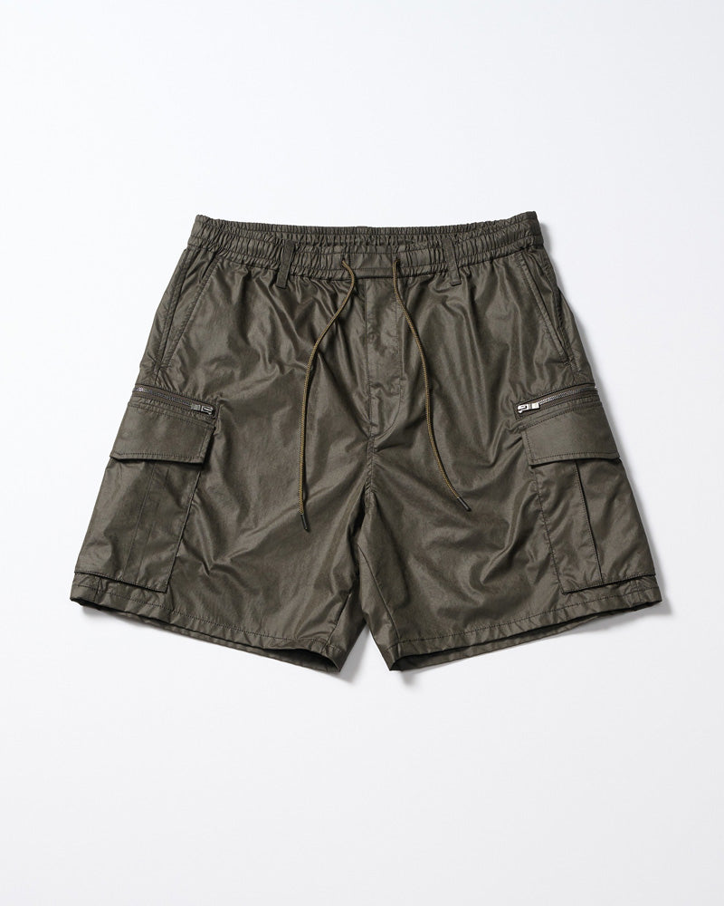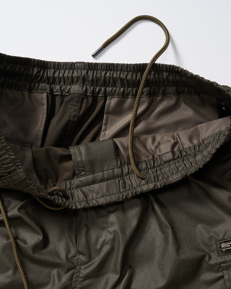 カーゴポケット上にファスナーを走らせ、デザインアクセントとすると共に機能性を高めている。カーゴポケットはマチを設けることで程よいボリュームを出すことができる。