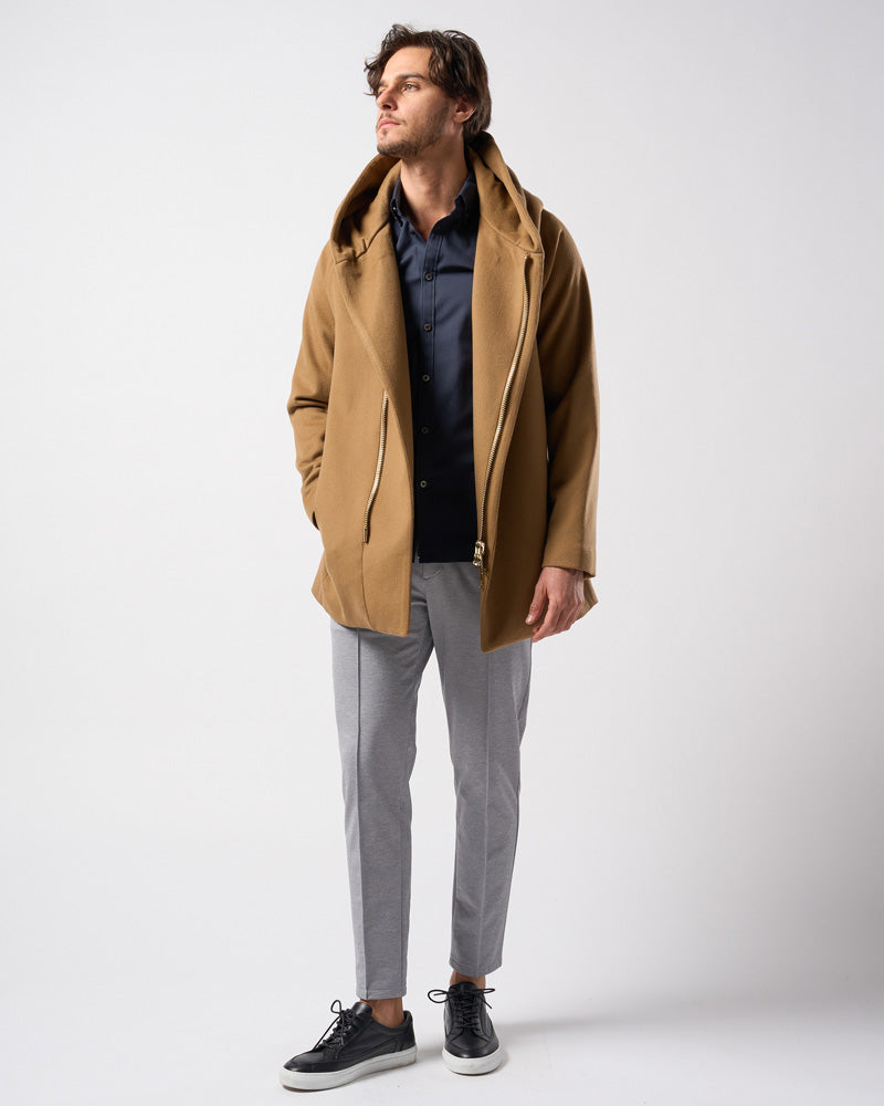 フードのボリューム感、体を包み込むようなラップデザインを特徴とする、wjkを代表する秋冬定番フーデッドコートをアップデート。様々な素材でリリースしてきた同モデルを、ラグジュアリー感のあるウールメルトン素材で仕上げた1着。