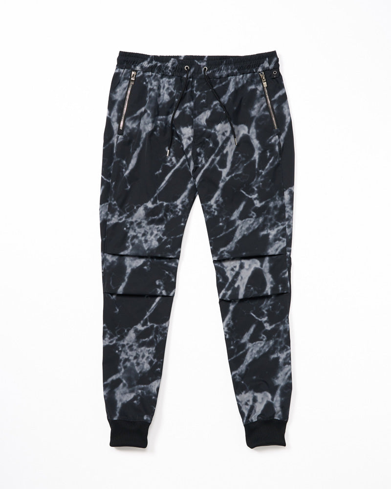 スポーティーな印象を与えるタックリブパンツ。