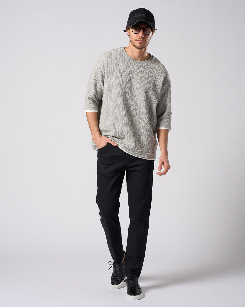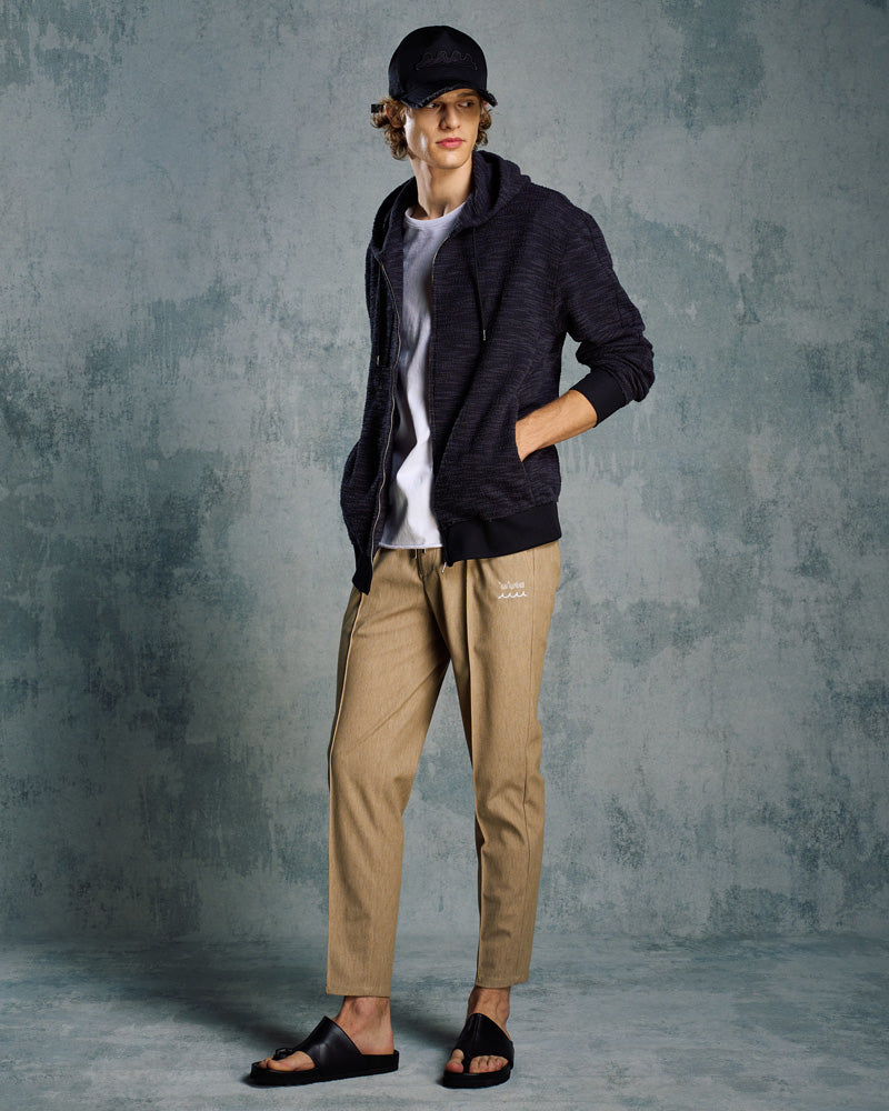 内側の「すべり」をパイル生地にする事で被った時の着用感を考慮。