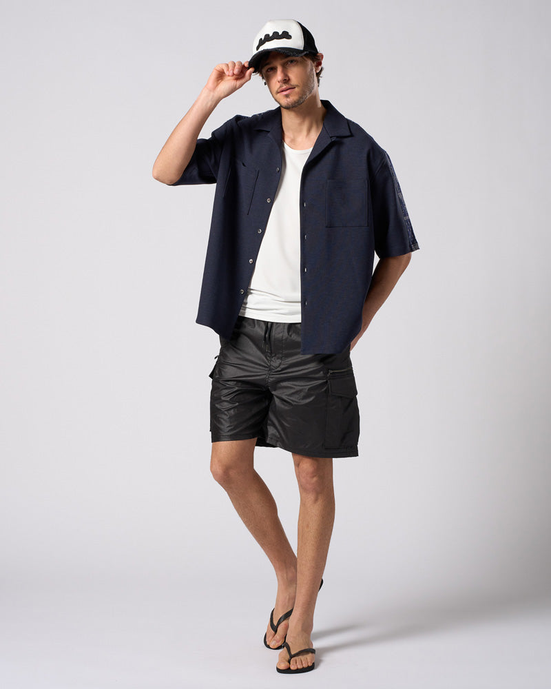 mutaの代表アイコン「wave」ワッペンを大胆にセット。ワッペンはタイガーカモがプリントされたリップストップ素材にて作製。