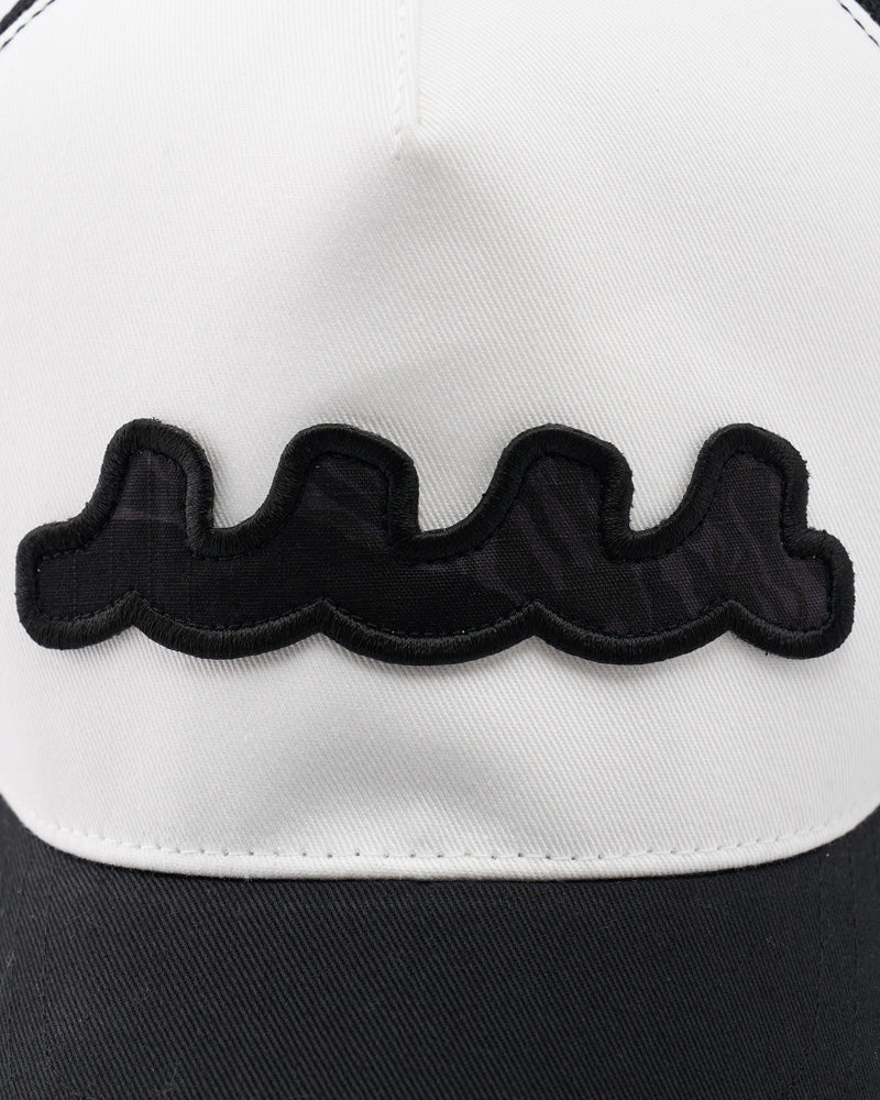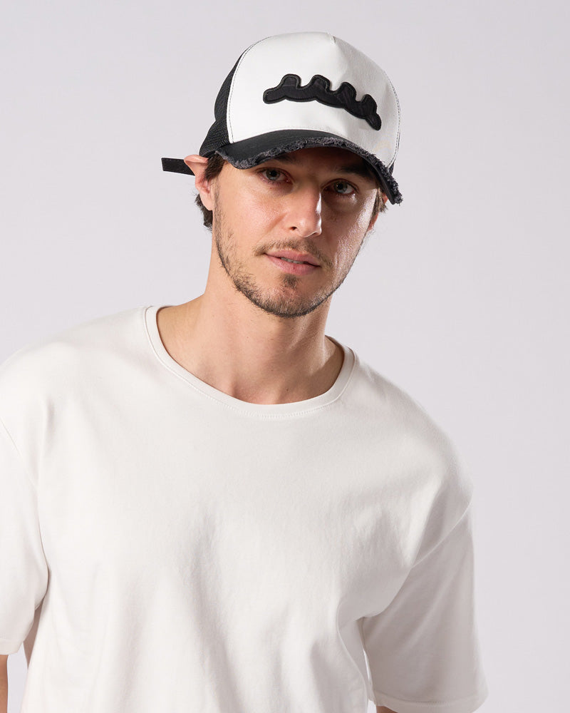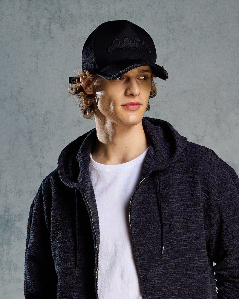 随所に断ち切りを施した、wjk定番のメッシュキャップ。