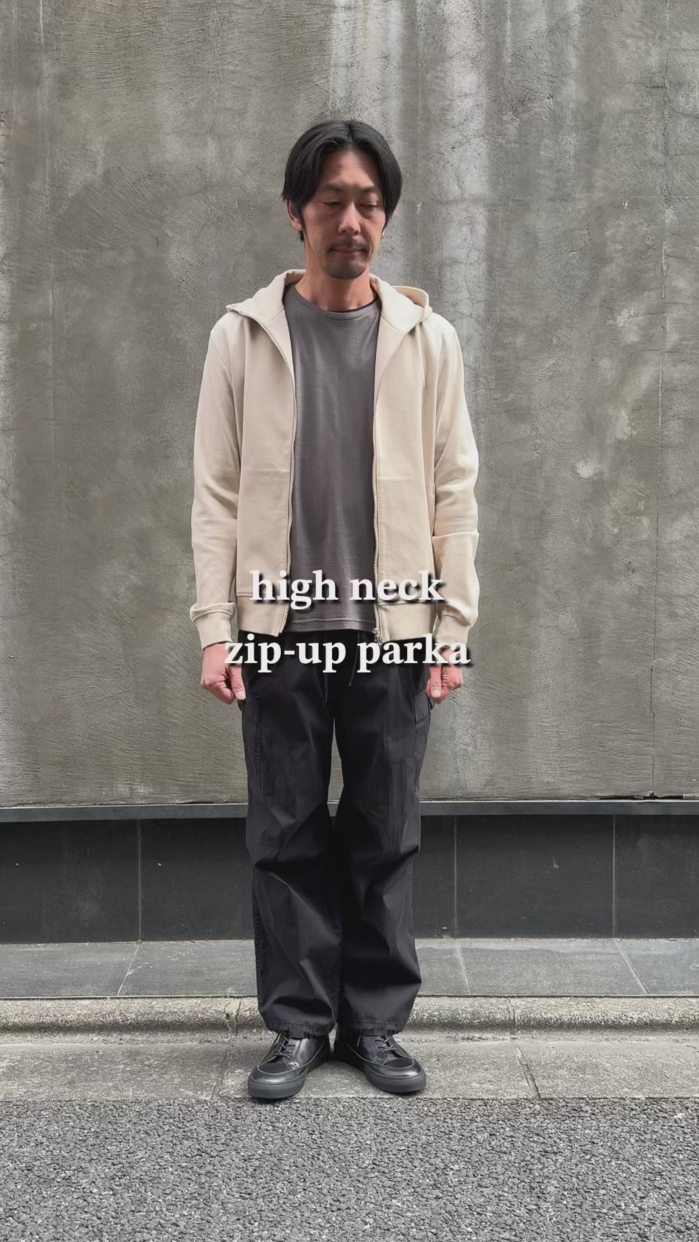 通年、定番で着用可能なジップパーカー。ミニマルな外観ながら、仕様、シルエット、生地に凝り、ブランドらしい流行にとらわれないベーシックセットアップを提案。