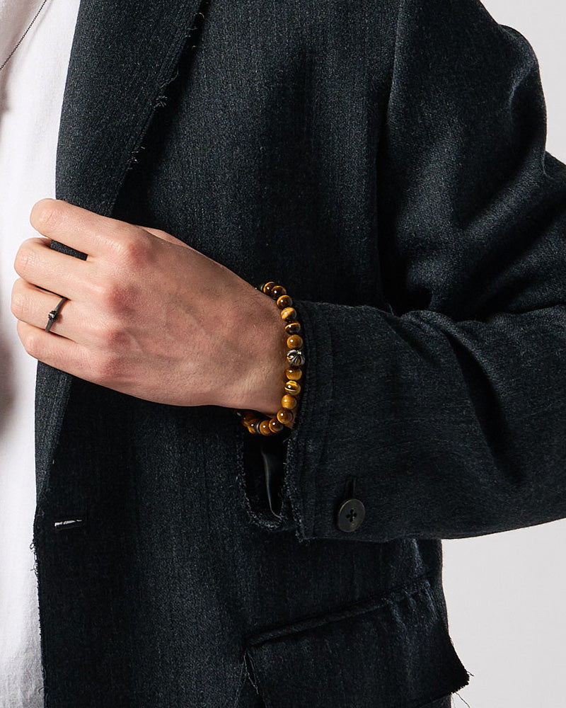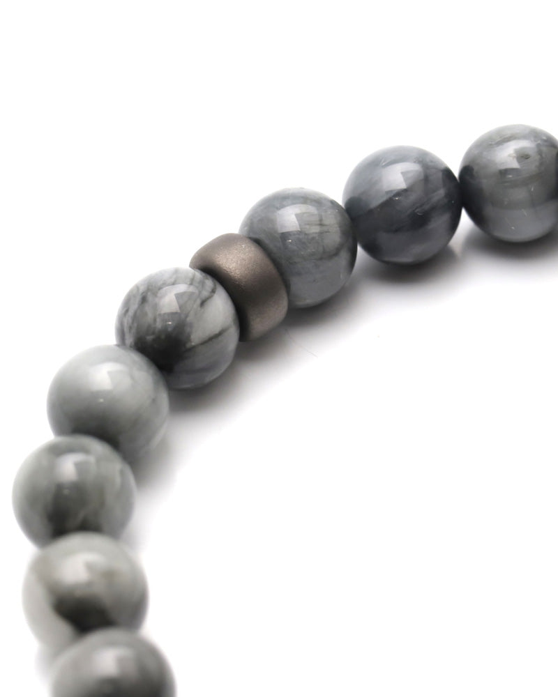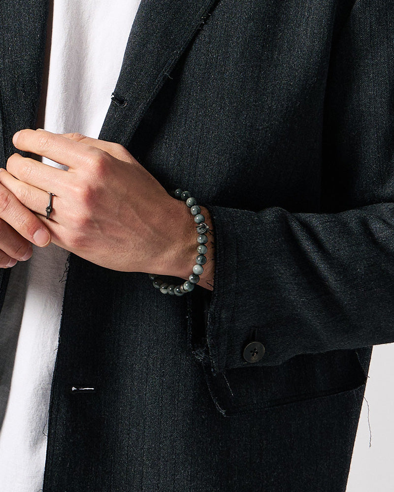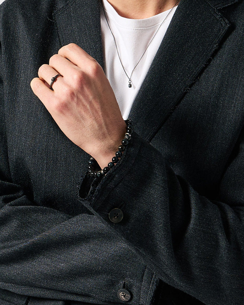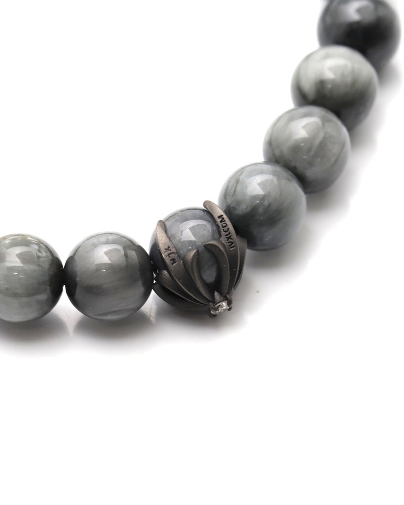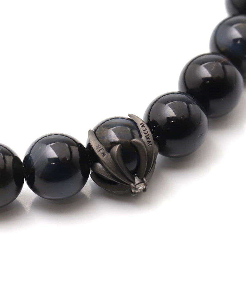 天然石のビーズとシルバー製のオリジナルパーツで組み上げられた、シンプル且つスタイリッシュなブレスレット。