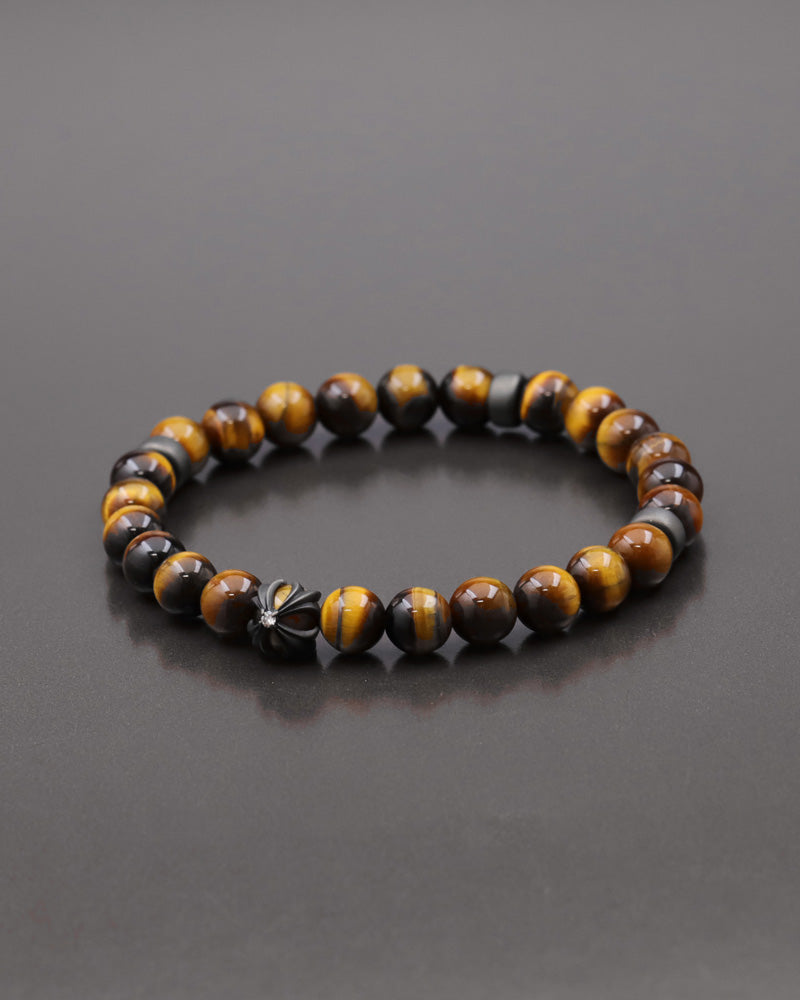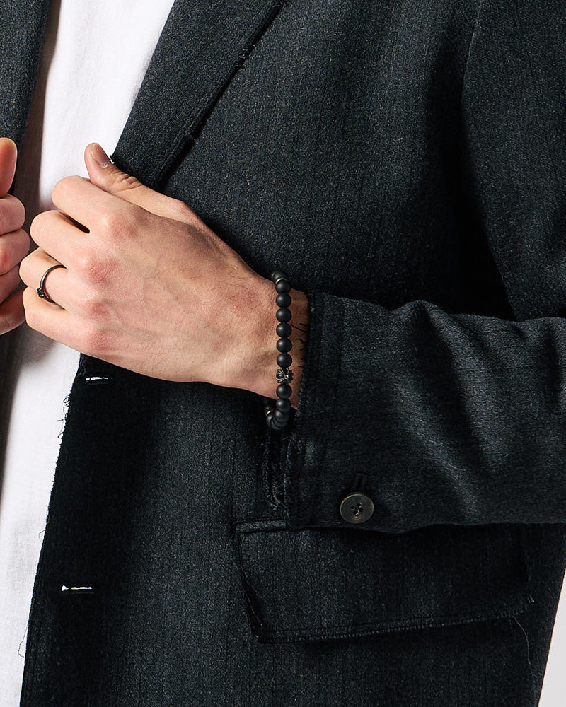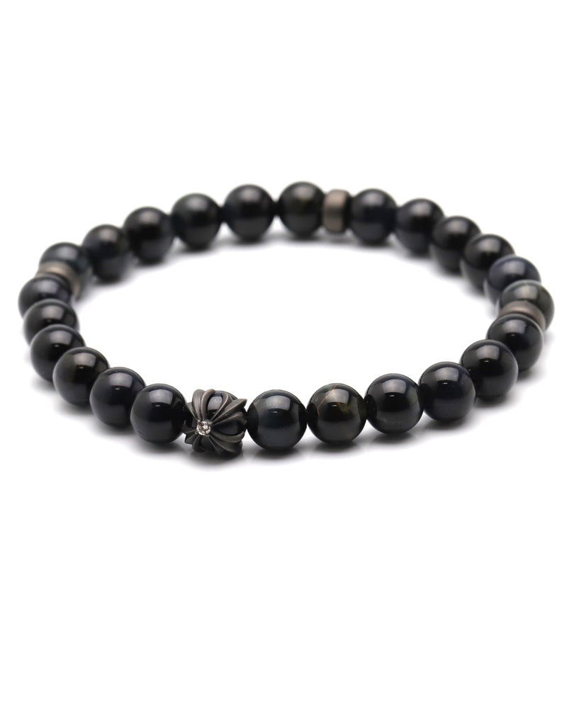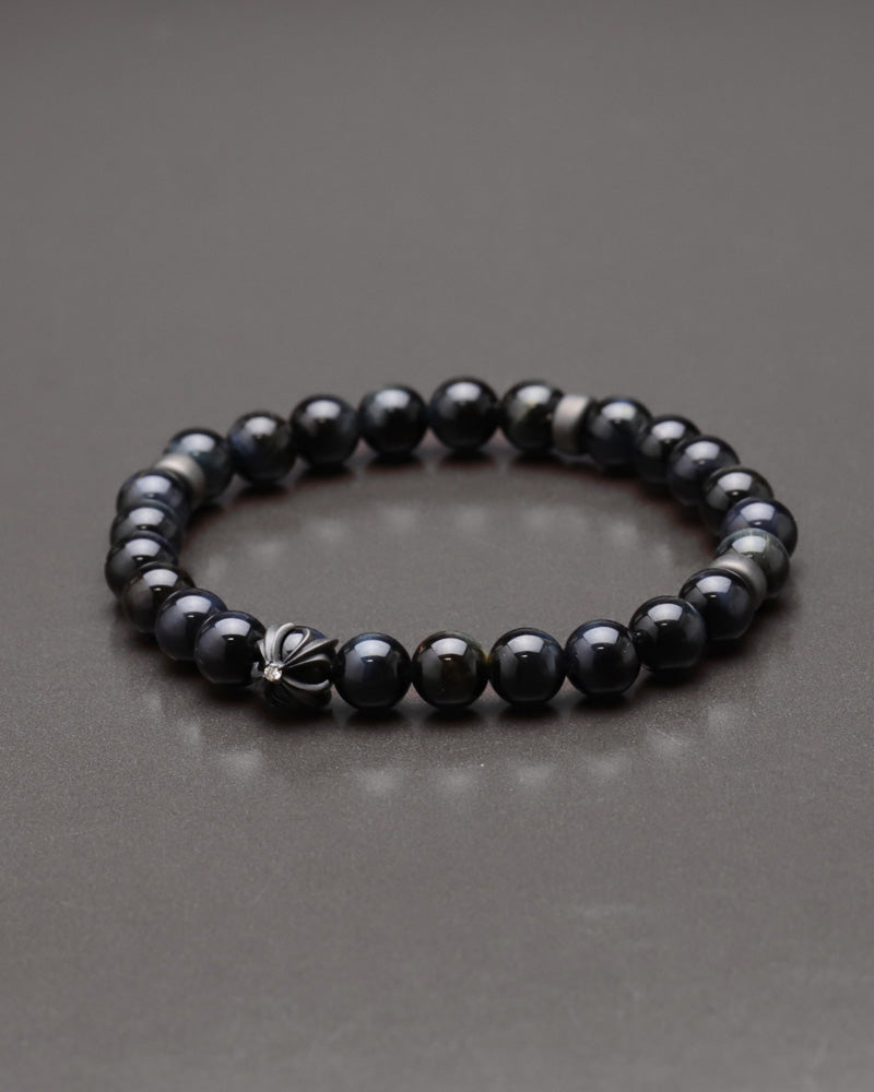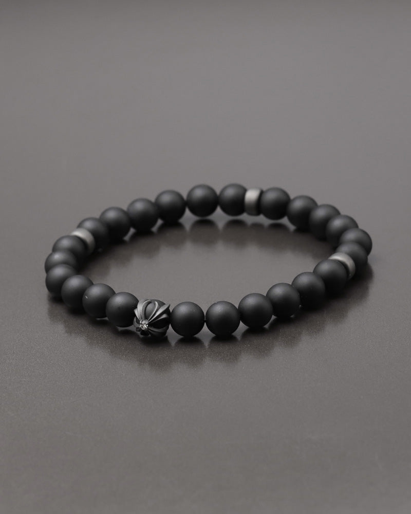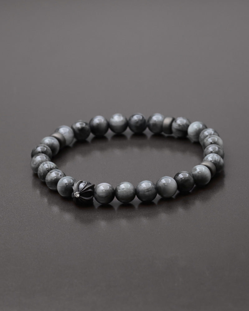 天然石のビーズとシルバー製のオリジナルパーツで組み上げられた、シンプル且つスタイリッシュなブレスレット。
