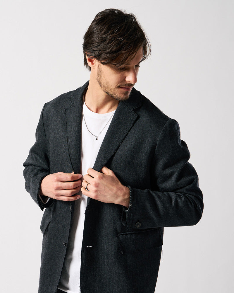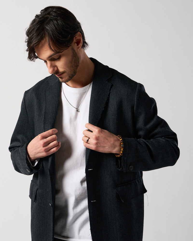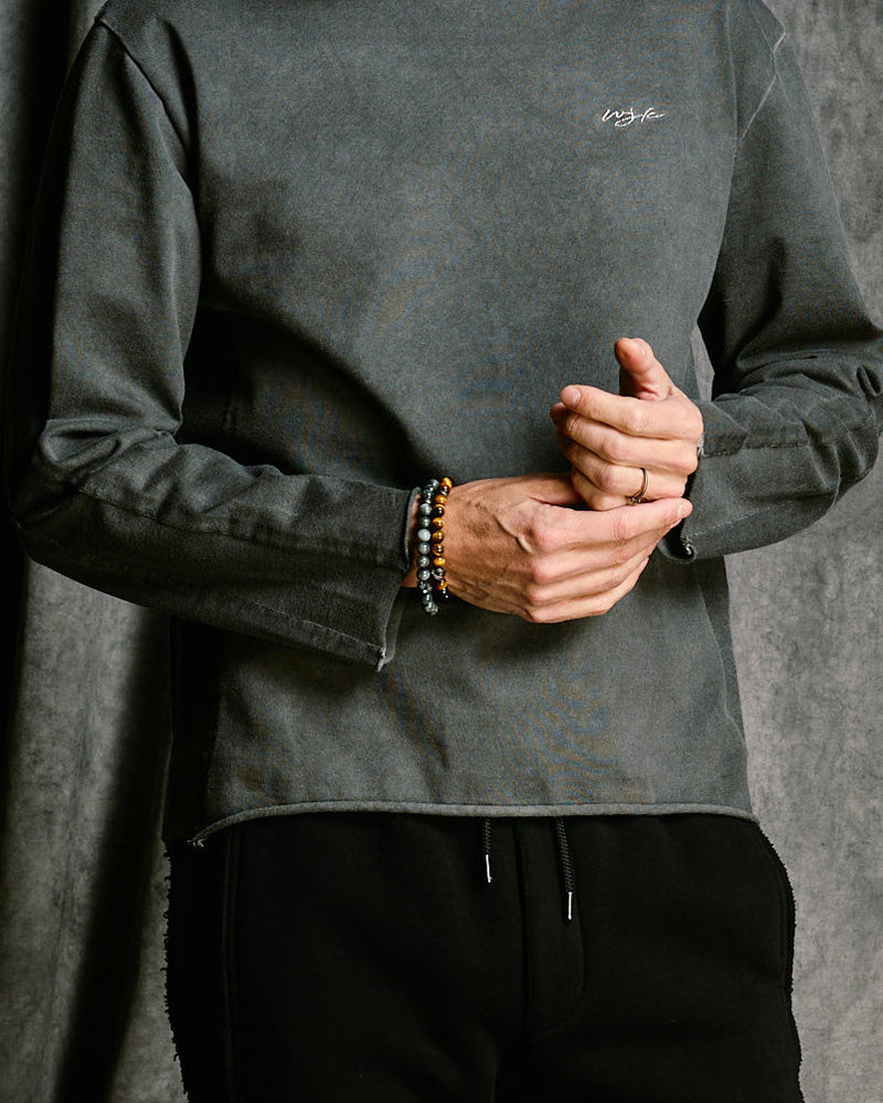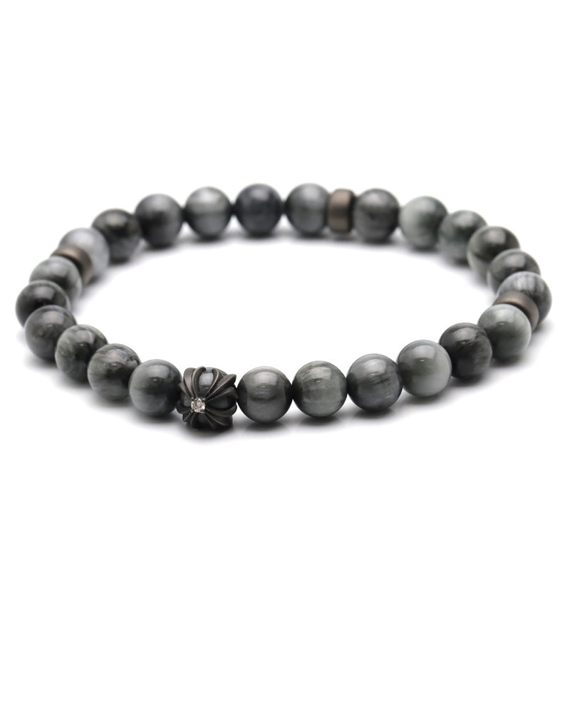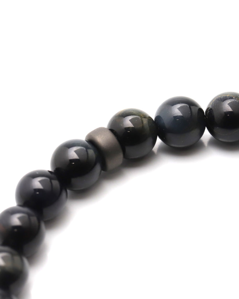 col.80 : グレーから黒とシックなモノトーンカラーが不規則に交じり合ったクールな天然石イーグルアイは、名前の通り鷲の目を彷彿させる鋭い光が時おり反射によって輝く魅力的な石です。