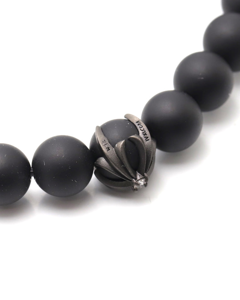 約8mmサイズの天然石のビーズにオリジナルデザインされたシルバー製のカバーパーツを直接被せる高度な技術によってより一体感のある洗練されたデザインとなっております。